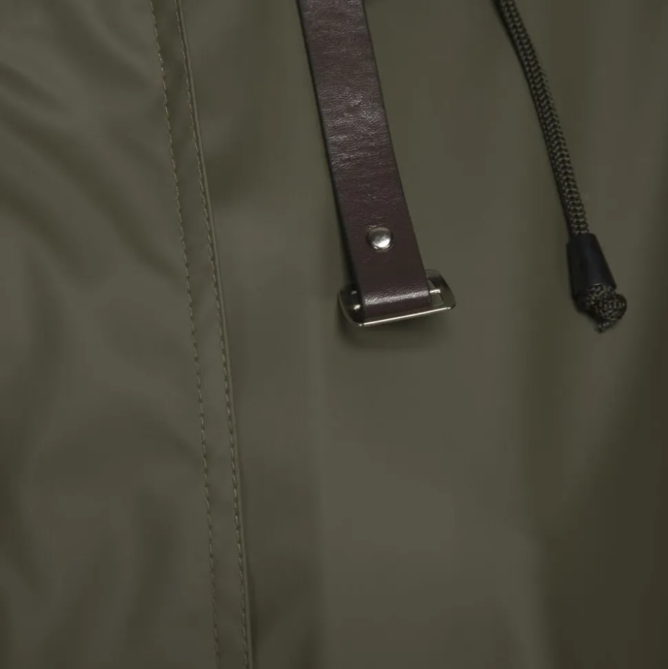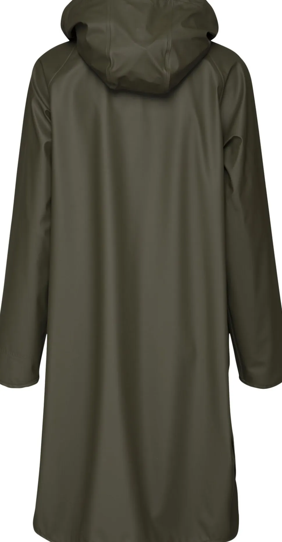 Vandtæt – W/P 5000 MM Gummieret PU-stof med trikot på bagsiden Blød og let kvalitet Sidelommer med klap Justerbare manchetter Stolpelukning med 2-vejs lynlås og skjulte trykknapper Svejsede sømme Aftagelig hætte Slidser i siderne med trykknapper for bedre bevægelighed Denne A-formede regnfrakke fra ILSE JACOBSEN HORNBÆK er en moderne fortolkning af den klassiske regnfrakke med løs pasform og detaljer, der gør den velegnet til brug året rundt. Bare tilføj en trøje eller et quiltet lag under den, når temperaturen falder! Regnfrakken er fremstillet i et let og raffineret, vandfast gummieret PU-materiale med trikot på bagsiden, der gør regnjakken ekstremt behagelig at have på. Regnfrakken har stolpelukning med 2-vejs YKK-lynlås og skjult trykknaplukning. Desuden er alle sømme svejsede for at gøre dem 100% vandfaste, så du ikke behøver at bekymre dig om, at der trænger vand ind, eller at du bliver våd. Ikke desto mindre er RAIN71 meget mere end bare en regnfrakke. Denne model har en aftagelig hætte, der er fastgjort med en vandfast strop i kunstlæder, to store sidelommer og justerbare manchetter med et lille logo på venstre ærme for perfekt pasform. Frakken er som skabt til regnvejrsdage. Uanset om du går tur, lufter hunden eller er ude at fiske, holder RAIN71 dig tør. Den er desuden ideel til cykelturen, da slidserne i siderne med trykknapper langs siderne muliggør ekstra bevægelse. Du kan vælge mellem to forskellige længder, afhængig af hvor høj du er, og et udvalg af såvel klassiske farver som sæsonfarver. Med RAIN71 kan du altid finde en regnfrakke, der passer til dig og resten af din garderobe. Materialer: 100% polyesterjersey med PU-overflade Funktionalitet: W/P 5000 MM Længde foran fra højeste punkt på skulderen: 94 cm Ryglængde fra højeste punkt på skulderen: 103 cm (str. 38)