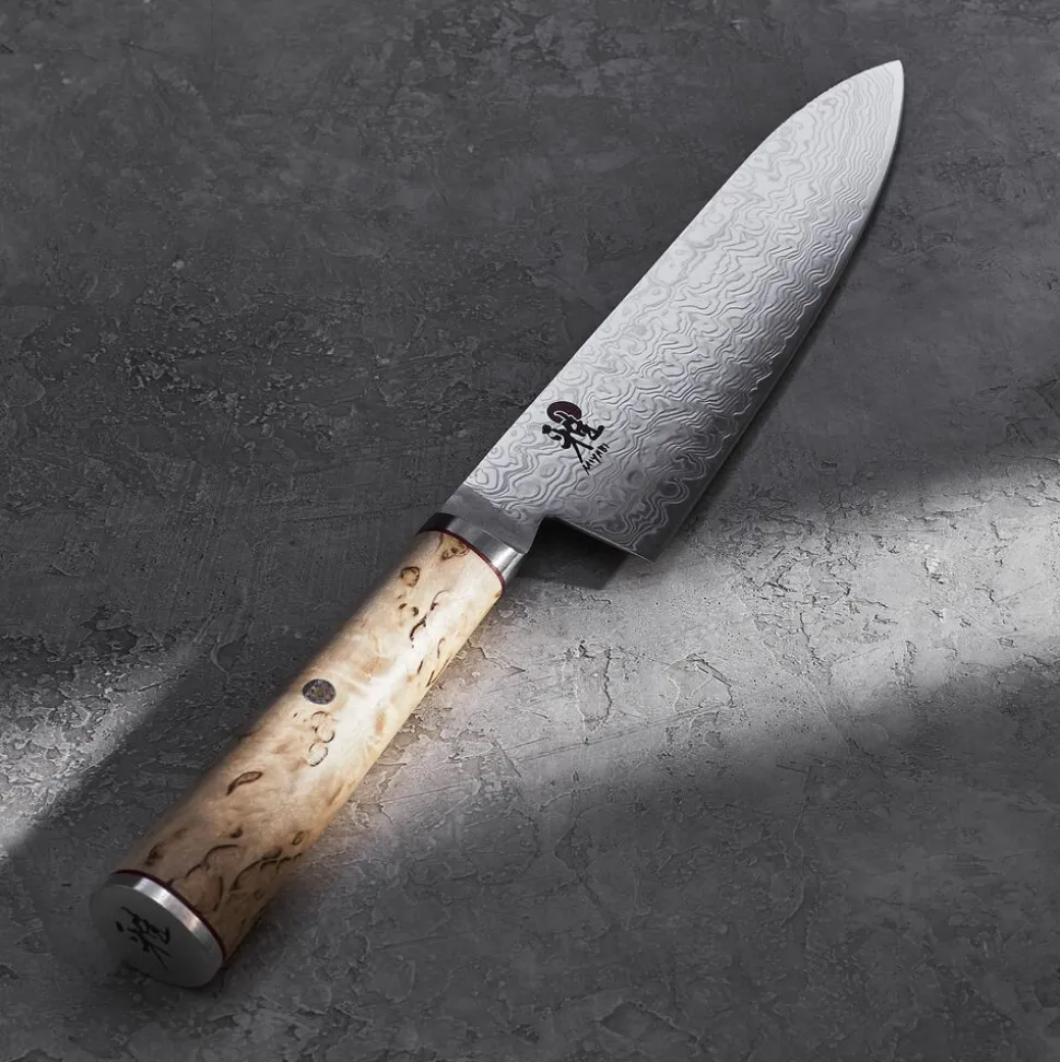 200 mm Gyutoh fra MIYABI 5000MCD er et yderst imponerende skæreredskab grundet knivens tynde, dog stabile blad med autentisk japansk profil. Knivens D skaft er lavet i masurtæ. Stålet har en Rockwell på ca. 63.
