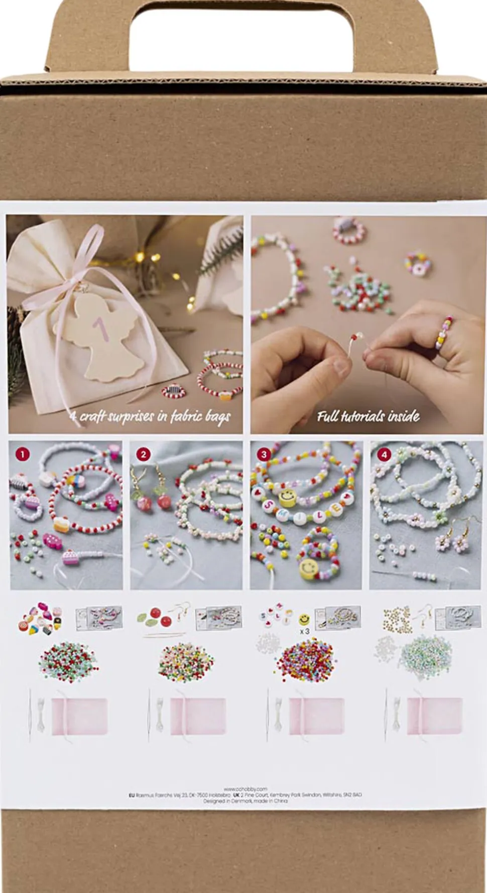 Årets adventskalender til smykkeentusiasten. Glæd dig til hver søndag i advent, hvor et nyt smykkeprojekt venter på dig. Indeholder alle de materialer du skal bruge, og al den vejledning du behøver. For børn og voksne er adventskalendere og julekalendere noget af det bedste ved julen. Det skaber en forventningsglæde i december og de fleste elsker glæden ved de små overraskelser, som venter på en. En julekalender er nemlig en påmindelse om, at julen nærmer sig, og en adventskalender er med til at gøre hver søndag i advent ekstra særlig. Er du vild med hjemmelavede perlesmykker, er denne adventskalender perfekt. Kalenderen består af fire gaveposer én til hver søndag i advent og med et nyt smykkeprojekt i hver. Selvom indholdet er en overraskelse, lover vi masser af smykkesjov i december.