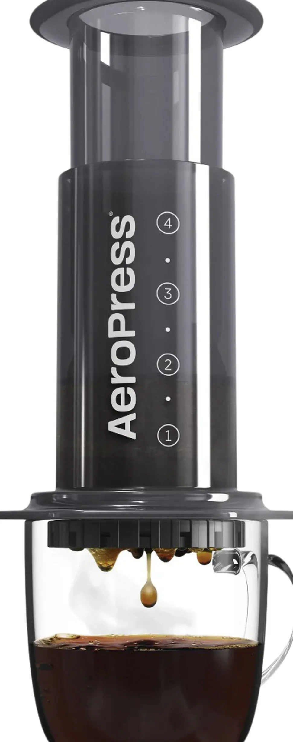 AeroPress fylder ikke meget og er nem at have med på tur. Du kan brygge op til 4 kopper kaffe ad gangen.