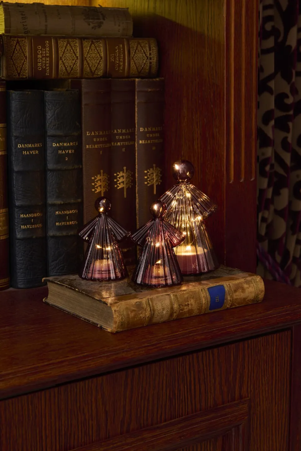 Elegant dekorations engel i mundblæst glas, LED lysene reflekter fint i det buet glas. Alberte serien kan fint mikses i forskellige størrelser og farver.