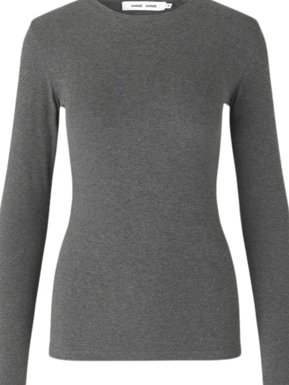 En langærmet t-shirt fremstillet i et bomuldsmodal-misk med elastan for øget pasform og komfort. Den dybe, runde halsudskæring fortil giver t-shirten et moderne look. En af Samsøe & Samsøes basisstyles.