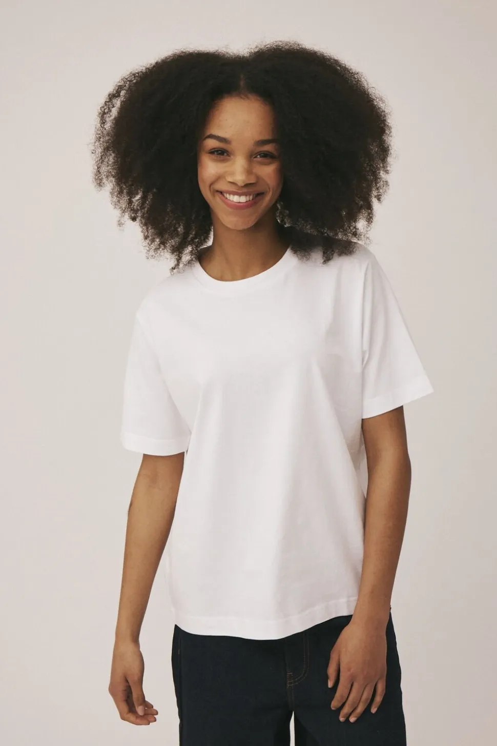 T-shirt fra Magasin du Nord Collection i den blødeste kvalitet af 100% økologisk bomuld med GOTS-certificering. T-shirten er enkel i modellen med korte ærmer, rib i den runde halsudskæring samt ‘Regular Fit’. En skøn T-shirt i en lækker kvalitet.