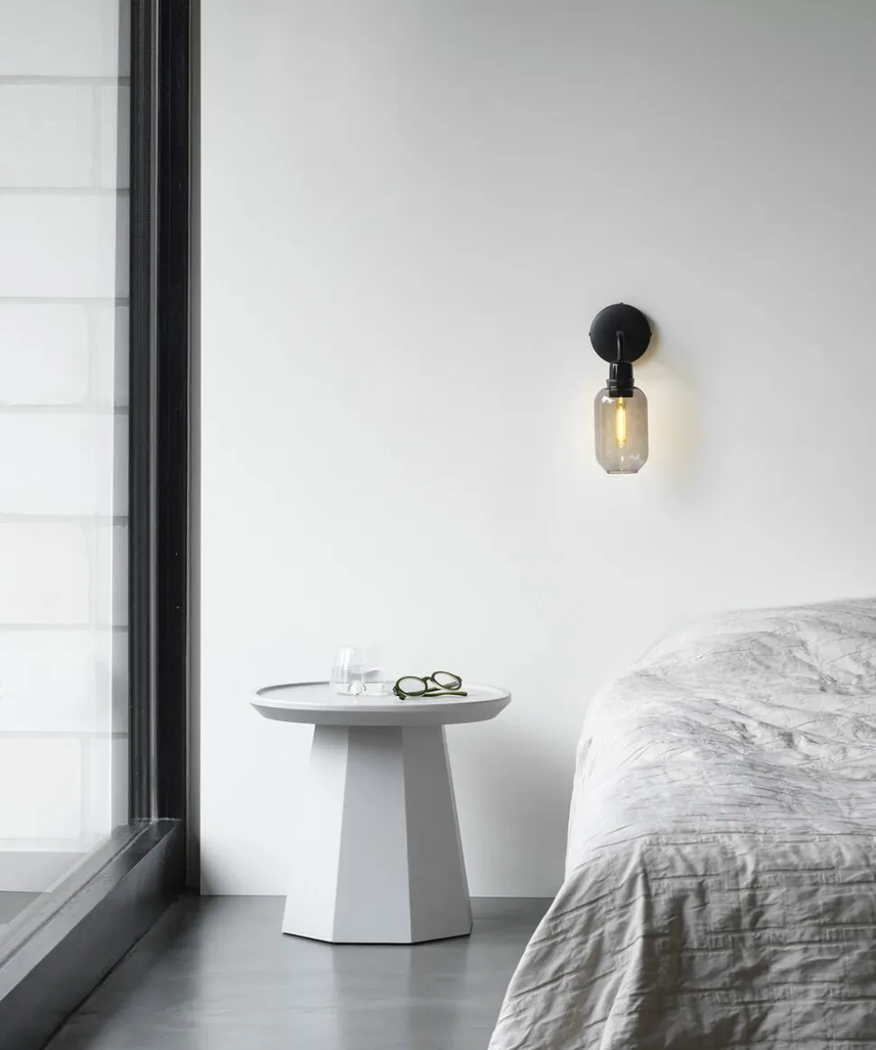 Væglampen leveres med en baldakin i pulverlakeret metal og leveres med en 2 meter ledning. Væglampen kan installeres direkte i stikkontakten (hardwired) eller ved hjælp af det medfølgende ledning. Afbryderen er placeret på basen.