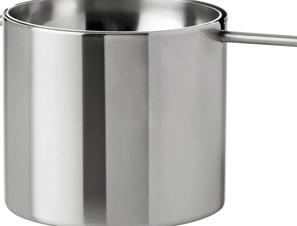 Arne Jacobsens klassiske vippeaskebæger er både smukt og funktionelt. Askebægeret består af en beholder og et vippelåg, som dækker cigaretskoddet og fjerner lugtgener. AJ askebægeret findes i to størrelser og er et sandt design-ikon. Brug det også til at rydde barbordet for fx pressede limeskaller og til sten fra oliven, når der serveres snacks.