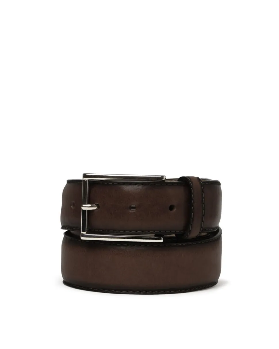 Eksklusivt mørkebrunt herrebælte model ARTHUR i ægte læder fra SADDLER. 35mm bredt med eksklusivt spænde. Bæredygtigt produceret i Italien. Egner sig til både business og casual brug. Den høje kvalitet på læderet gør at det kun bliver flottere med tiden. Bæltelængden er målt fra bæltespændet til midterste af de 5 huller.