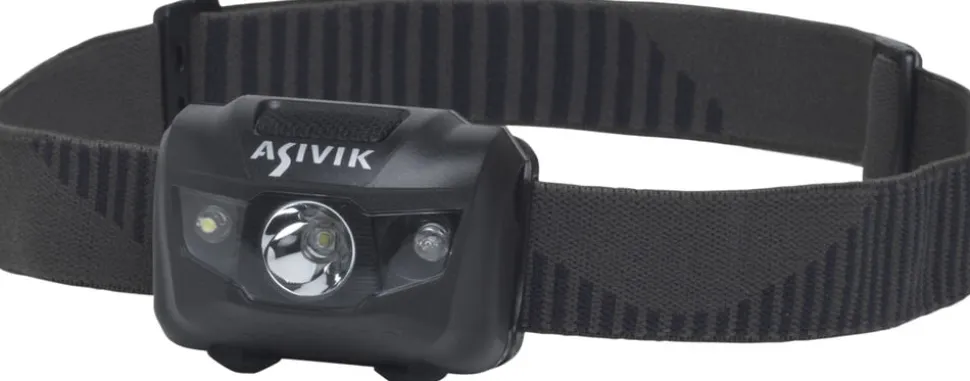 Asivik Scout er en robust pandelygte med en kraftig og fokuseret lyskegle. 3 lysstyrker og en rød diode.
