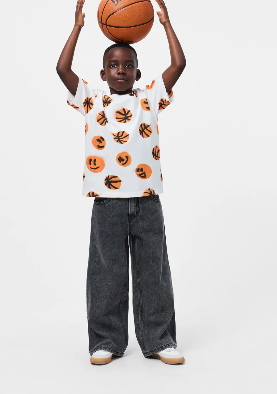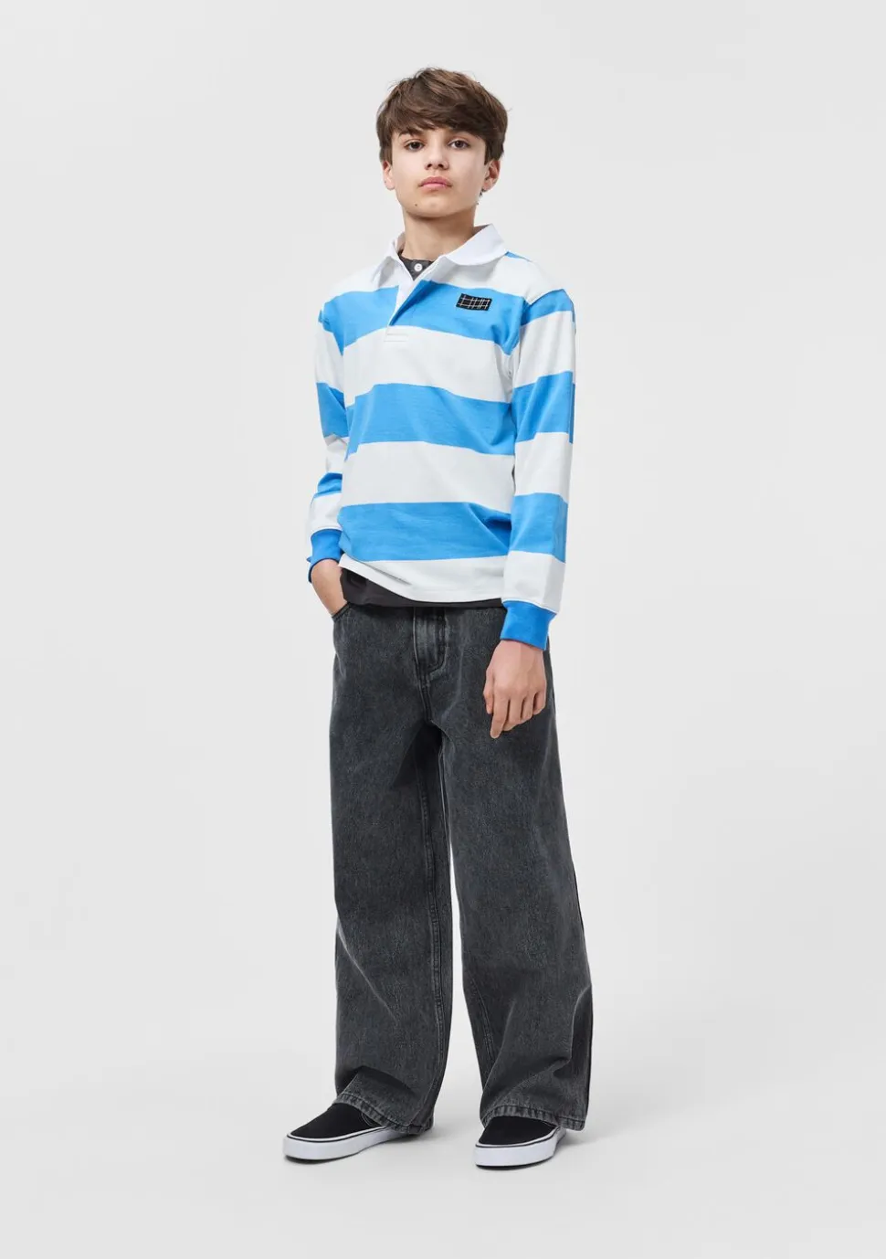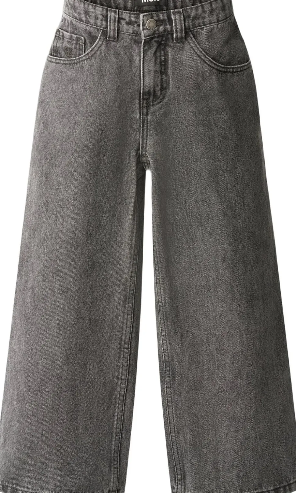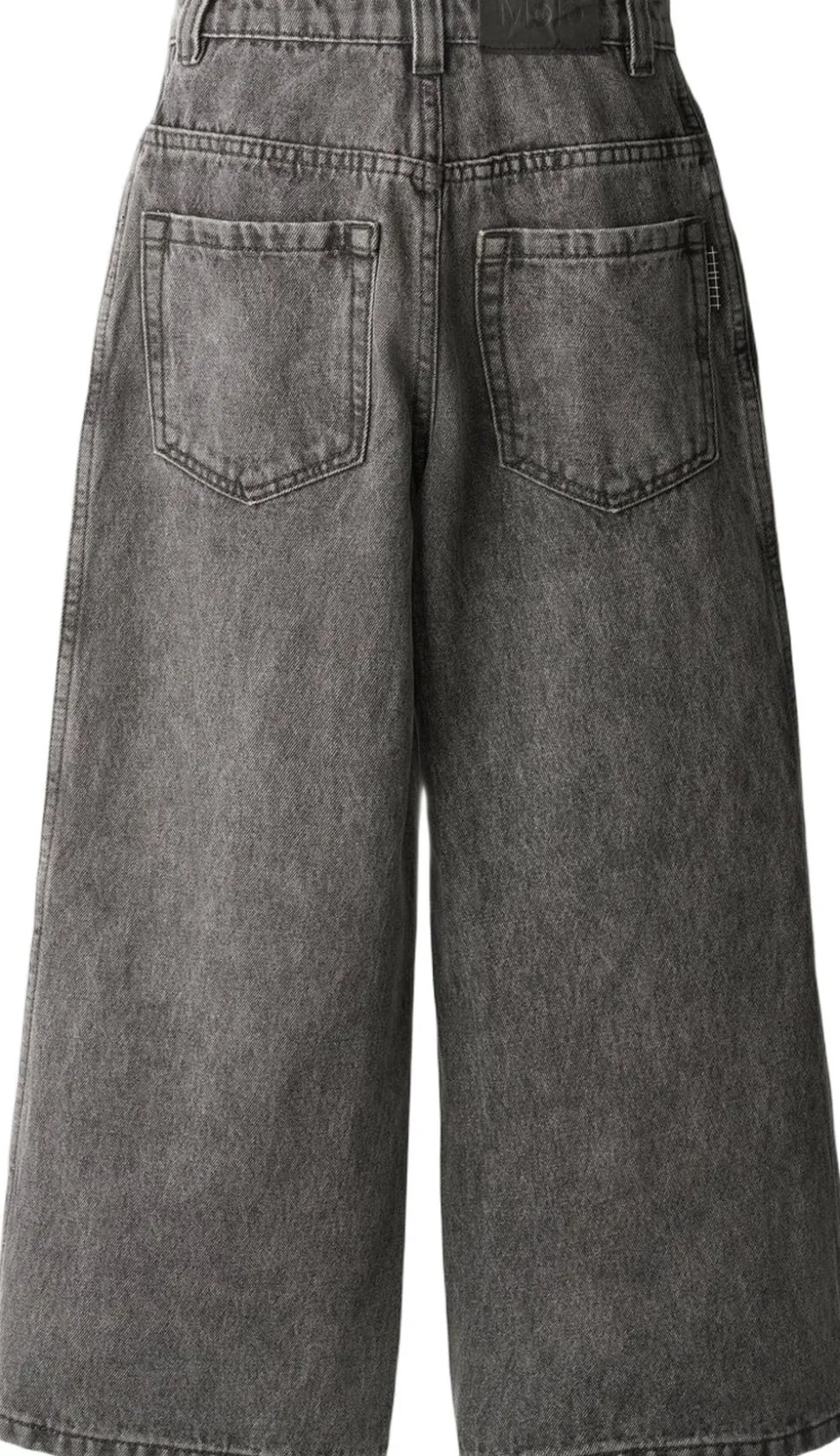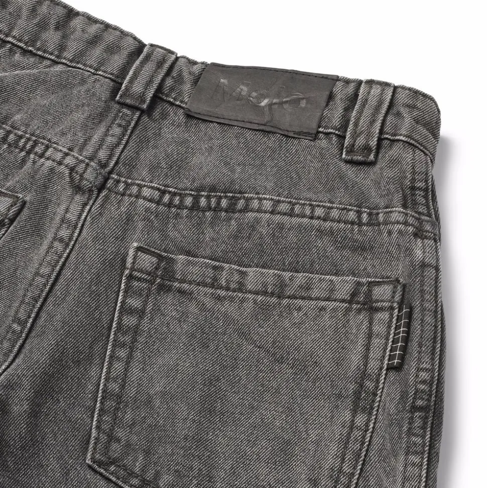 Grå denimjeans med et sejt, skater-inspireret design. Bukserne har klassisk 5-lommedesign og en rummelig pasform, ideel til aktive dage. Taljen kan justeres indvendigt for optimal pasform, så de sidder godt på alle børn. Små størrelser har praktisk trykknap, mens større versioner har en klassisk jeansknap for nem lukning.