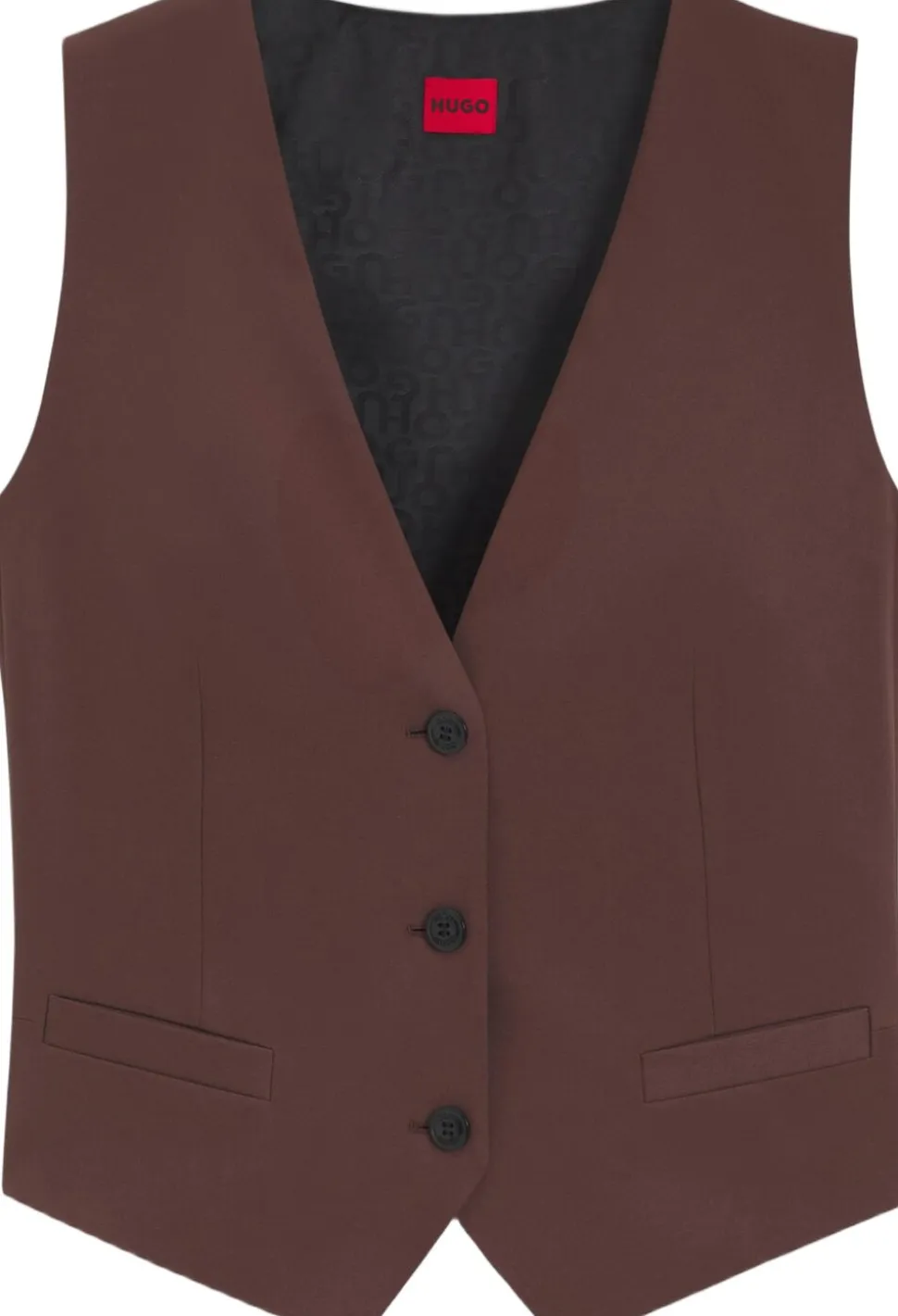 Denne HUGO dametøj-vest skaber et moderne ensemble med de matchende bukser og er en uundværlig beklædningsinspireret jakke til mænd. Lige pasform. Strækstof. Spændende detaljer.
