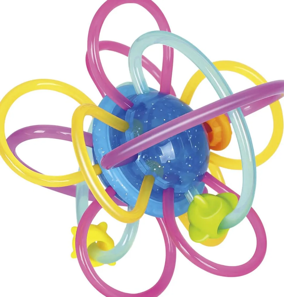 Flex rangle med bideringe Kuglen kan drejes med kliklyde og de bløde fleksible bideringe og flytbare figurer er lindrende for babyens ømme gummer