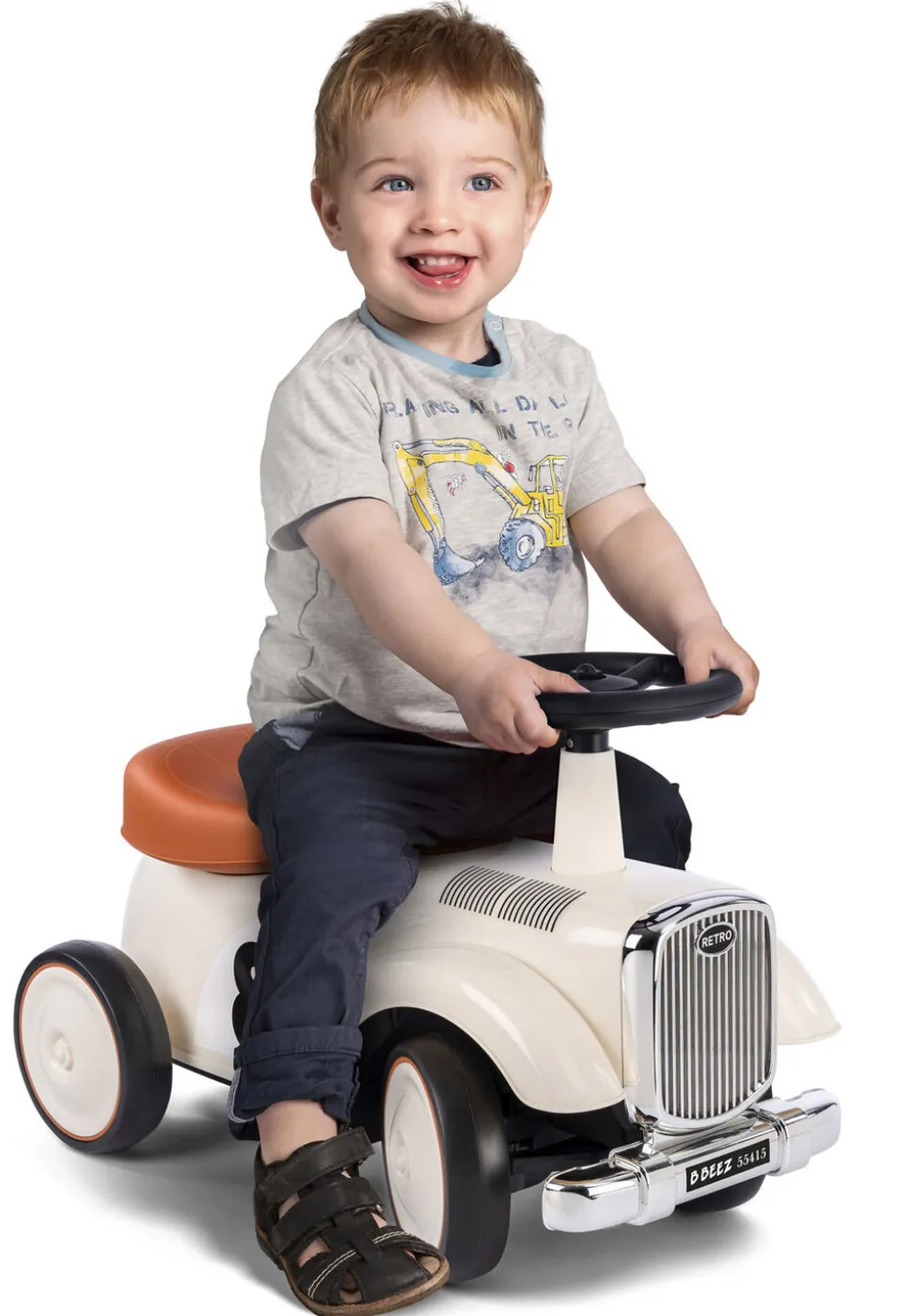 B BEEZ retro gåbil Robust gåbil med bredt sæde, lyddæmpede og brede skridsikre hjul for bedre stabilitet og sæde med opbevaringsrum Styrhøjde ca 36 cm Siddehøjde ca 26 cm 36x58x26cm Kan bære 25 kg