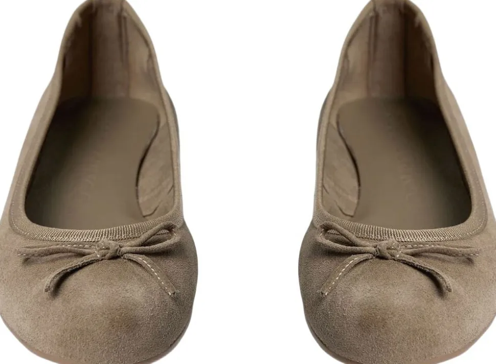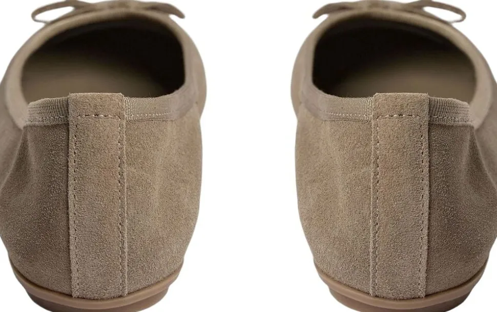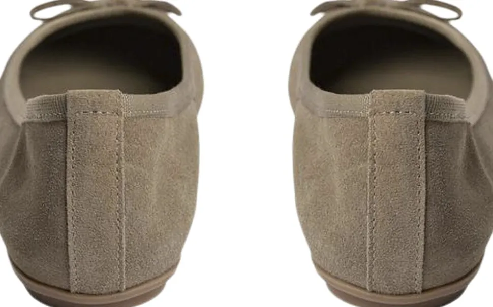 Sød ruskind ballerinasko i en smuk dark brown med sløjfe over vristen.