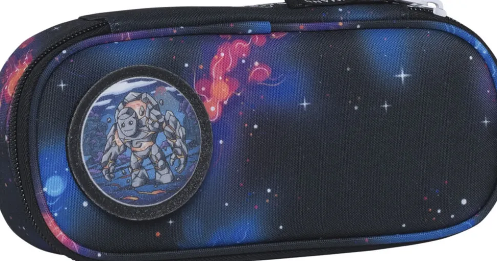 Det ovale penalhus er rummeligt og har en separat sektion til de mest brugte blyanter, og en lomme der lukkes med lynlås. Ydersiden er dekoreret med designs der matcher skoletasken, og penalhuset kommer med en aftagelig velcro button. Leveres uden indhold.
