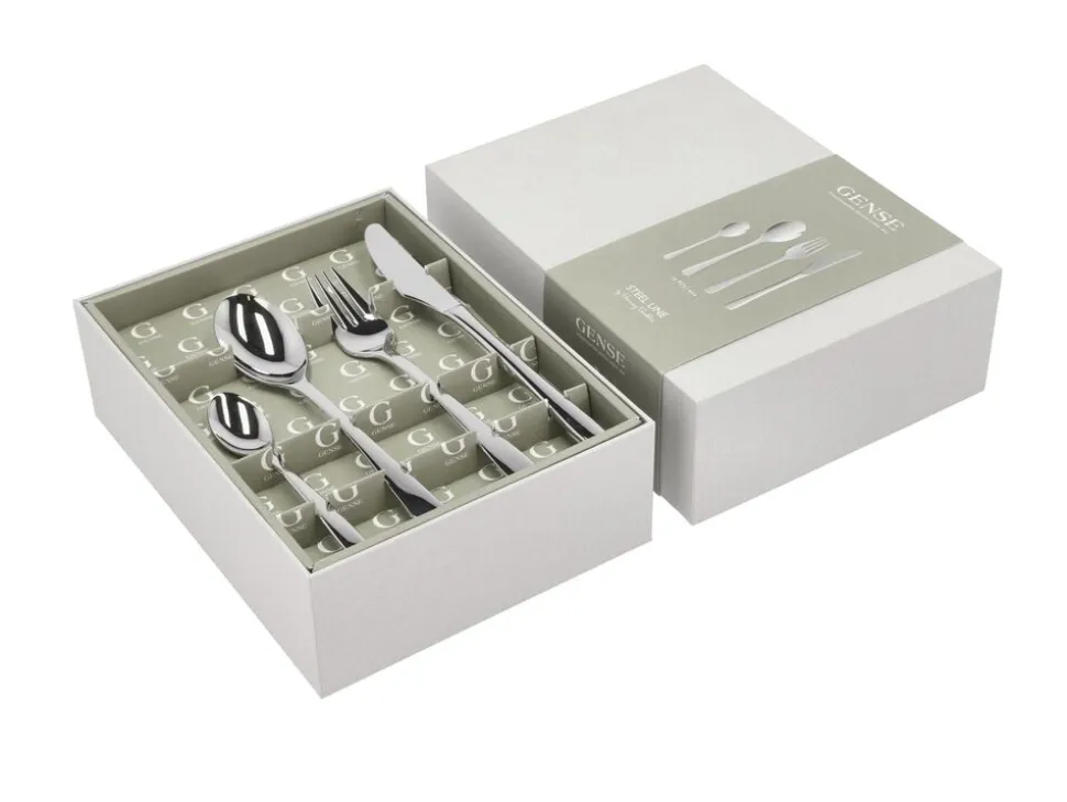 Med dets bløde form og glatte overflade, er Steel Line det bedst sælgende bestik nogensinde, og kan både bruges i hverdagen eller til særlige lejligheder. Udført i rustfritl 18/8 stål og er blank poleret. Gaveæsken indeholder: 4x Kaffeskeer, 4x Spiseskeer, 4x Bordgafler, 4x Bordknive. Der findes mange dele i serien, som kan fås i Magasins boligafdeling.