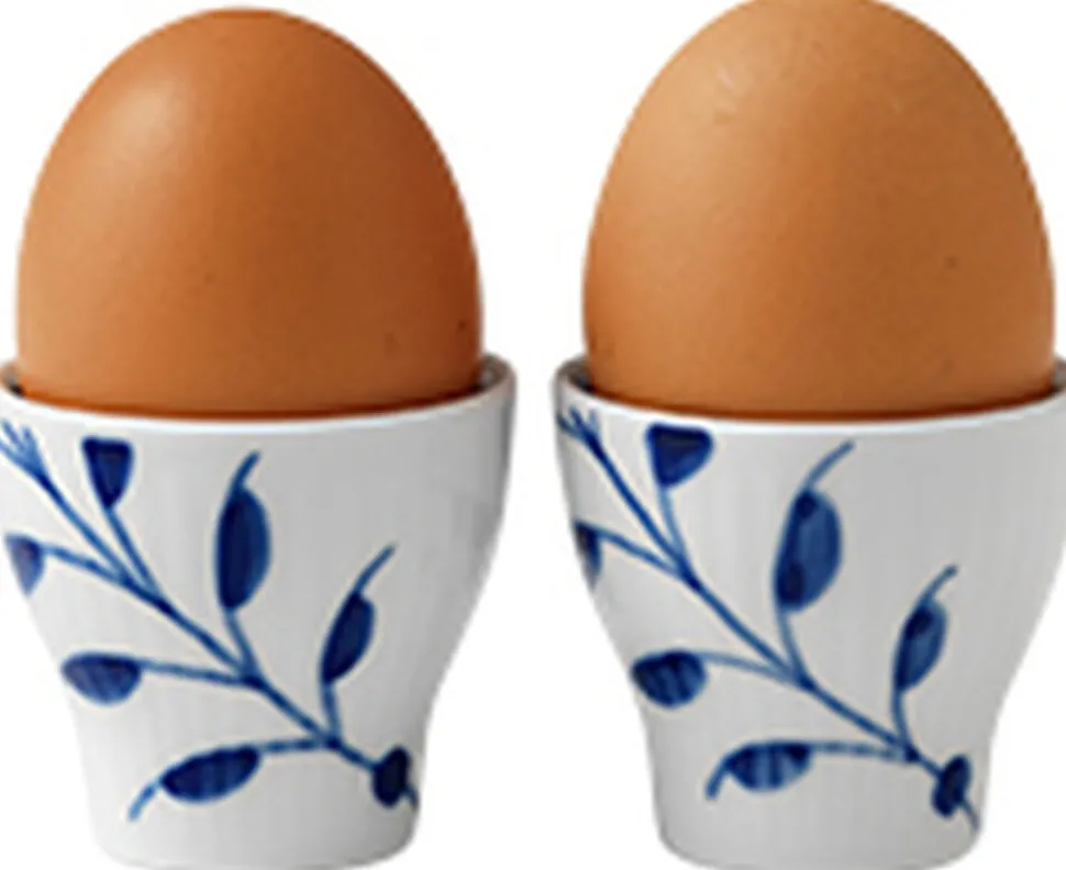 • Elegant design: Æggebægerne har et hvidt og blåt design, der er både tidløst og moderne. Det riflet mønster tilføjer en ekstra dimension til designet og gør hvert æggebæger unikt.