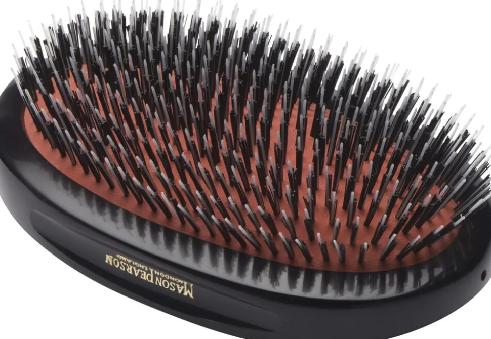 Mason Pearson BN1M er den største herre børste i sortimentet og er fremstillet af vildsvinehår og nylon. Mason Pearson børsten i vildsvinehår og nylon anbefales fra normalt til tykt hår. BN1M er specifikt designet som en herrebørste, Military style betyder at børsten ikke har et håndtag og er generelt kraftigere og mere maskulin i sit udtryk. En Mason Pearson børste masserer og stimulerer hovedbunden, hvorved hårbundens naturlige olier bliver frigivet. Ved gennembørstning bliver olien fordelt ud i længden af håret, så håret får en naturlig glans, samt fylde i bunden. Mason Pearson anbefaler 100 strøg om dagen – en investering i et godt hår hele livet!