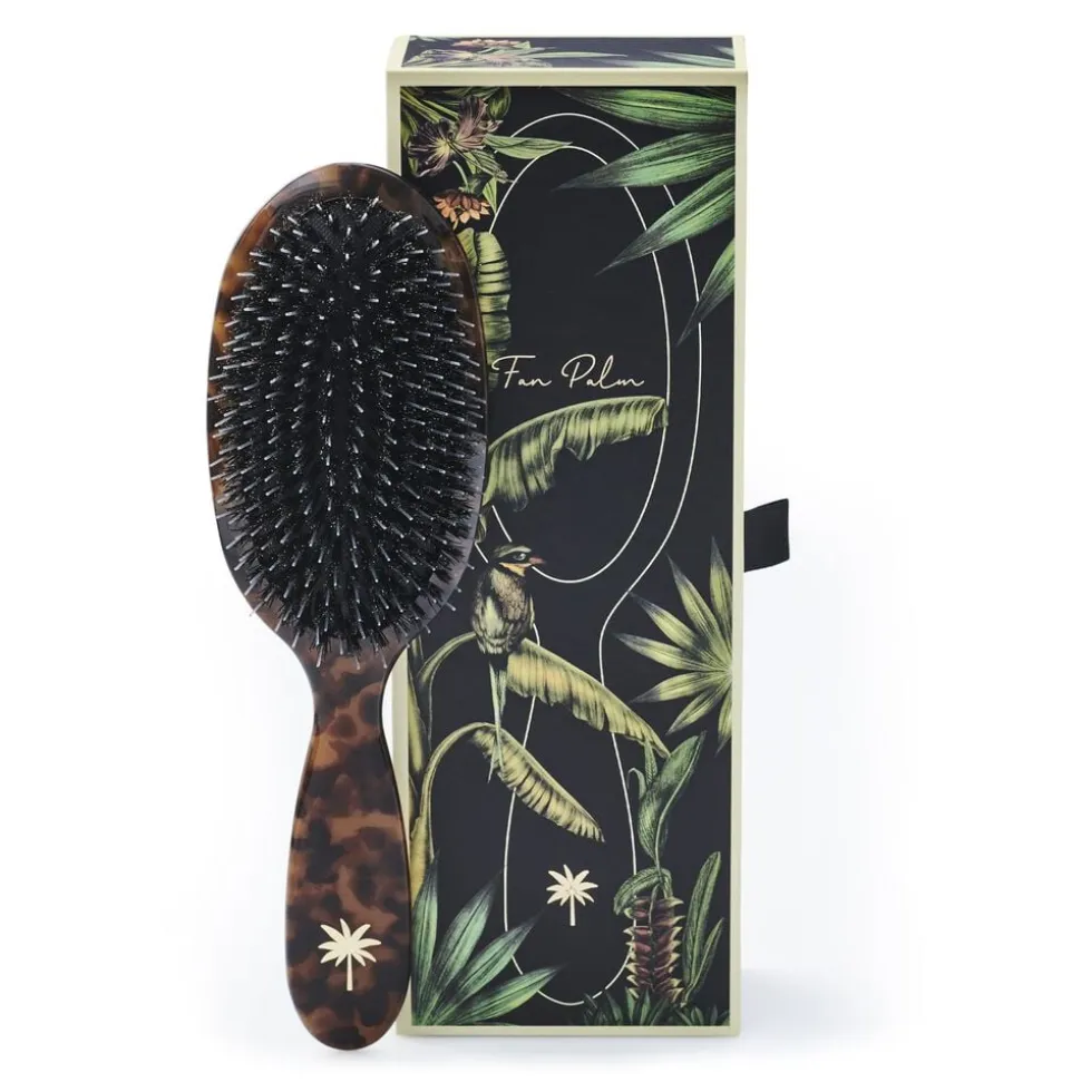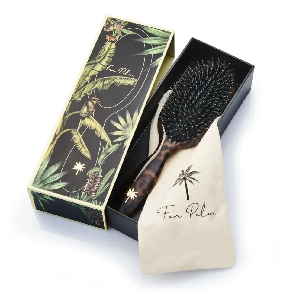 Hårbørste fra Fan Palm i en lækker kvalitet med det fineste mønster. Hårbørsten har hår af vildsvin samt lange, tykke nylonbørstehår, der stimulerer hovedbunden og blodcirkulationen, hvilket kan give en bedre hårvækst. Nylonhårene er desuden varmebeskyttede, så hårbørsten er ideel til føntørring. En skøn hårbørste af den bedste kvalitet. Dustbag medfølger.