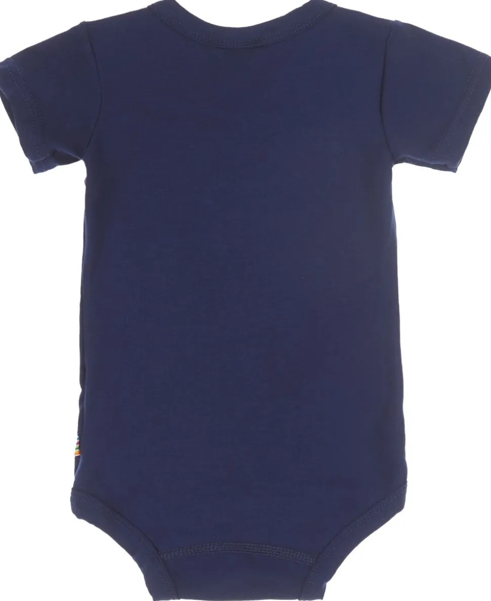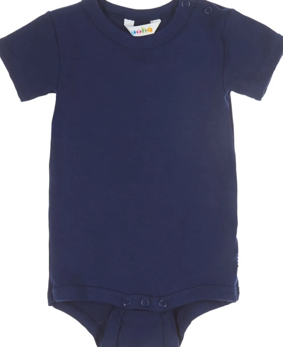 Body med korte ærmer. Trykknapper på den ene skulder samt mellem benene for en nemmere påklædning. En elastisk viskosekvalitet med bambus som er dejlig blød og lækker. Perfekt at bruge inderst. Ensfarvet.
