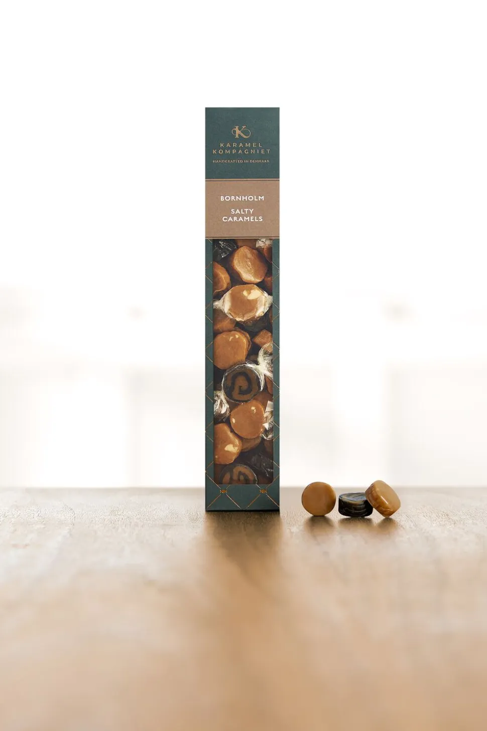Karamelblanding med Fløde & Læsø Sydesalt, Peanuts & Læsø Sydesalt og sidst men ikke mindst Lakrids & Fløde med Læsø Sydesalt. De tre salte gourmetfavoritter.