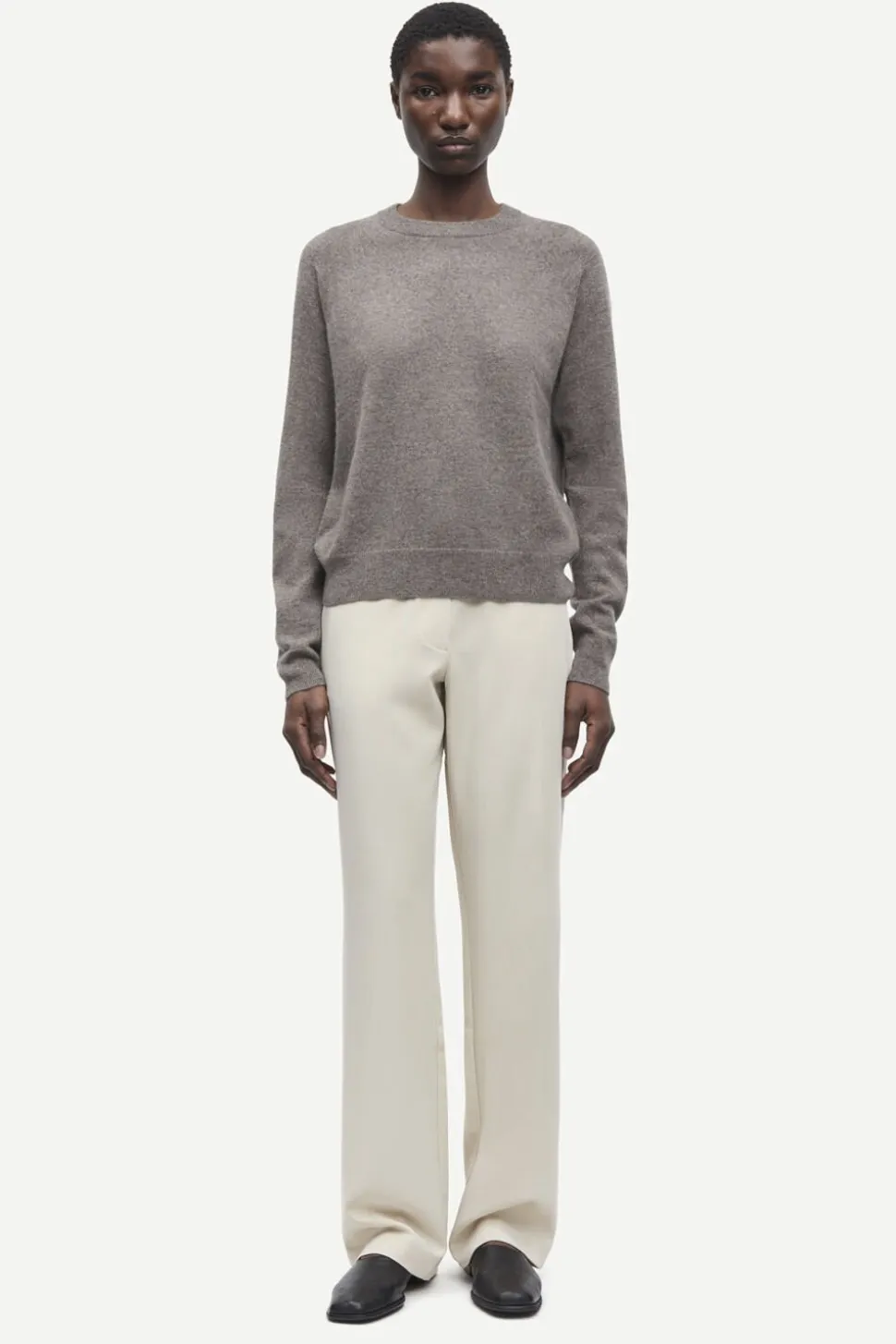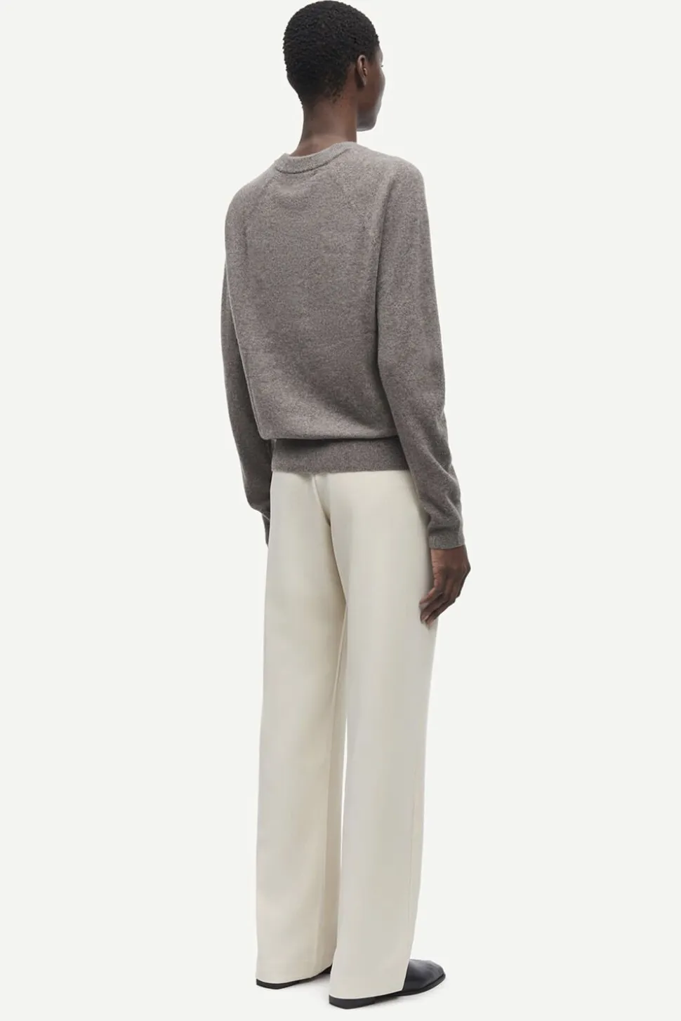 Sweater med løs pasform og raglanærmer Ribstrikdetaljer i den runde hals, manchetterne og forneden. Strikket i fin kvalitet. Hovedmaterialet er fremstillet af 100% kashmir. Dette produkt er GCS-certificeret. GCS understøtter den ansvarlige produktion af kashmiruld.