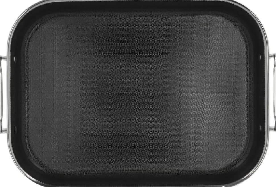 Bradepande, 39 x 26,5 x 10,6 cm. Paillon Hybrid-serien fra Pillivuyt Gourmet er fremstillet i 3-ply rustfrit stål, som er en konstruktion af to lag rustfrit stål med et aluminiumlag imellem. Det betyder, at varmen fordeles hurtigt og fastholdes jævnt. Takket være den indvendige keramiske hybridbelægning får du en slidstærk overflade med en effektiv non-stick-effekt. Det forhøjede mønster i rustfrit stål beskytter bunden, mens den keramiske topbelægning sikrer, at maden ikke brænder fast. Kort fortalt: Fremstillet i 3-ply rustfrit stål Keramisk hybridbelægning på indersiden Poleret rustfrit stål på ydersiden Velegnet til alle varmekilder også induktion Tåler alle redskaber, men vi anbefaler træ, plast eller silikone Tåler ovn op til 240 °C (gryder dog uden låg) Håndopvask anbefales Produceret uden PFAS