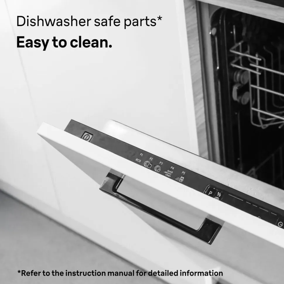 Samtidig er køkkenet beskyttet mod stænk og sprøjt takket være SplashControl-teknologien, der er integreret i blenderfoden. Det betyder, at du kan blende direkte i gryden, skålen eller glasset uden at skulle bekymre dig om rengøring bagefter.