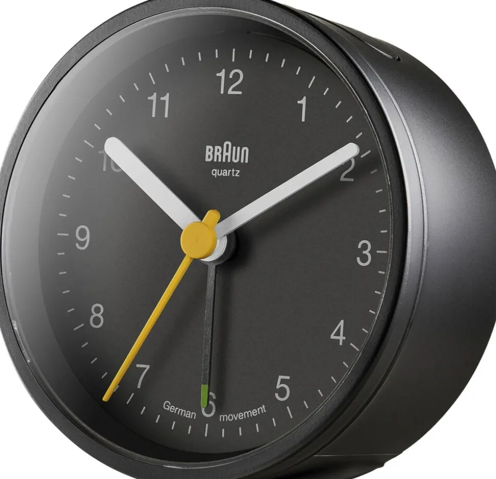 Udstyr sengebordet med denne enkle version af det klassiske Braun vækkeur. Stort display. Stigende alarmtone. Snooze-funktion.