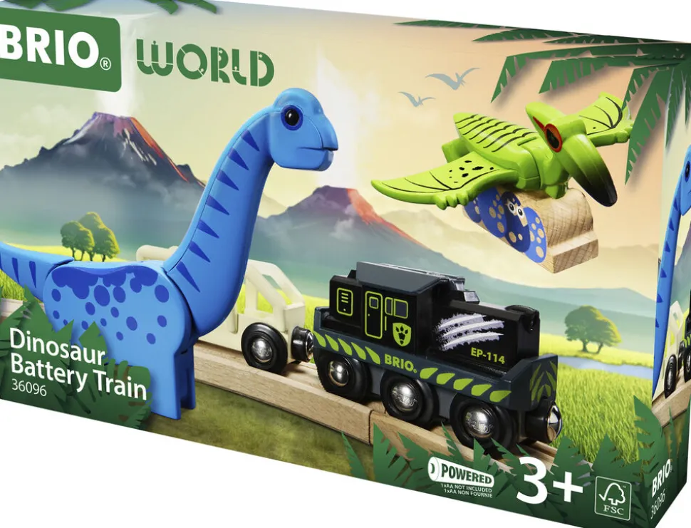 Gå på opdagelse i dinosaurernes verden med dette batteridrevne legetøjstog med frem- og tilbagefunktioner og forlygte Der medfølger to farverige dinosaurer med unikke bevægelige dele og klassiske BRIO-magneter til at skabe spændende interaktioner i legen. Bruger 1 stk. AA-batteri (ikke incl.). Fra 3 år.