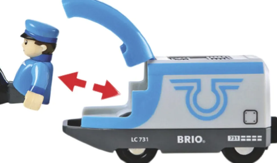 Moderne batteridrevet passagertog Lokoføreren sidder behageligt i sit sæde klar til at tage passagerne med ud på nye eventyr Lad fantasien bestemme næste stop Bruger 1 stk AA-batteri ikke incl 3 dele Fra 3 år
