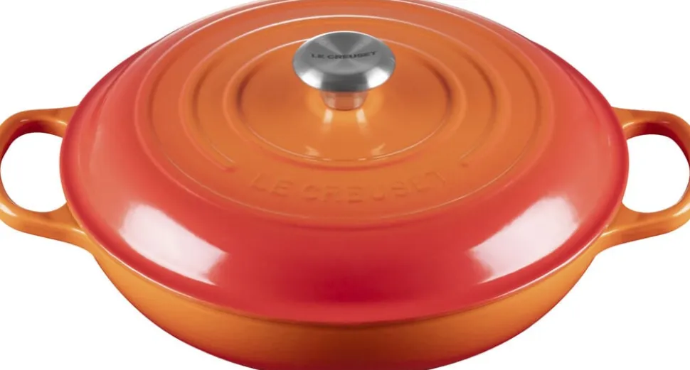 Le Creuset buffetgryde i støbejern har den ideelle form og størrelse til klassiske risretter som fx paella, risotto og couscous. Den brede og flade buffetgryde sikrer maksimal kontakt med varmekilden, og der er rigelig plads til, at ris og couscous kan udvide sig.