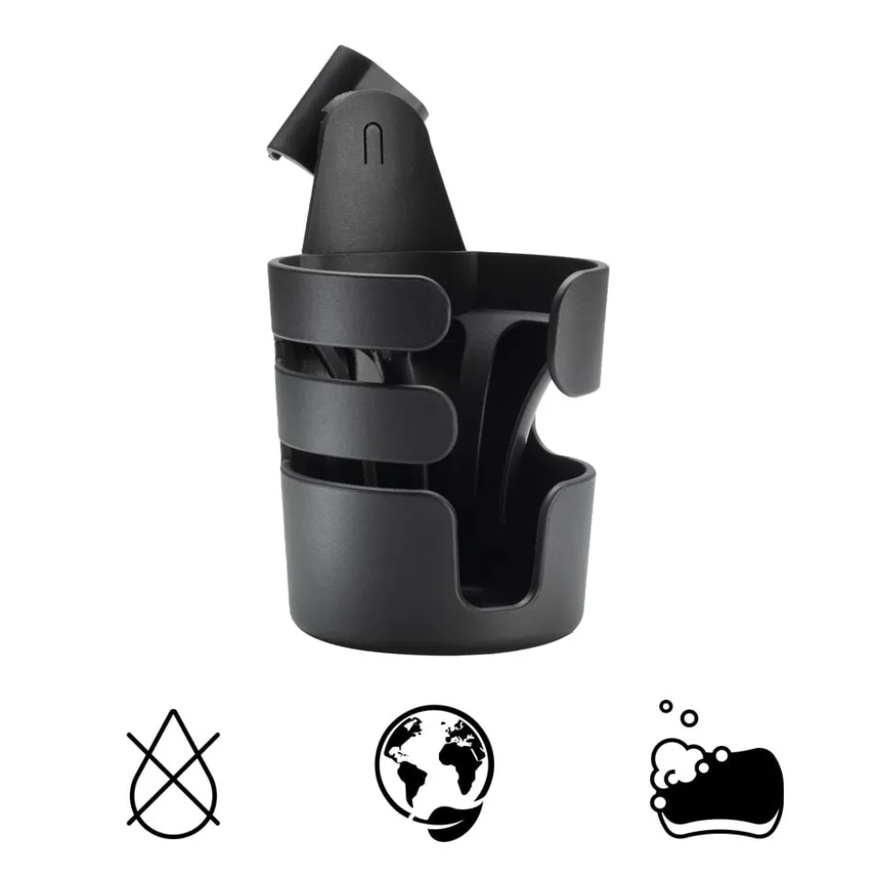 Bugaboos smarte og rummelige kopholder passer til alle vogne. Med den universelle strop kan den nemt monteres på alle Bugaboos vogne – men også på andre barnevogne.