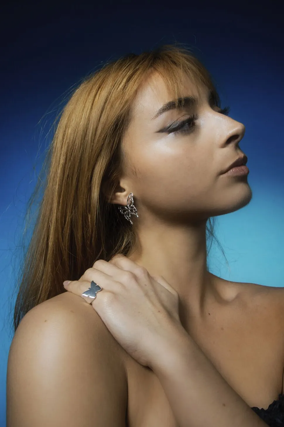 Signet Ring formet som en sommerfuglesilhuet i sterlingsølv.