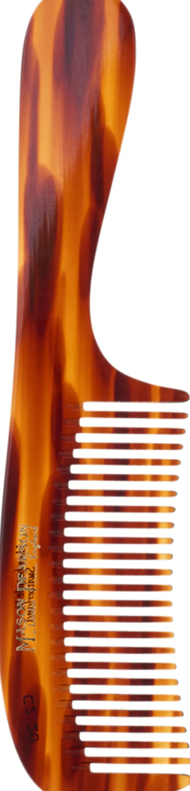 Mason Pearson C2 Detangling Comb er en stor kam med håndtag, specielt beregnet til frisering af filtret hår og fin at have med i håndtasken. Er perfekt til udredning af vådt hår.