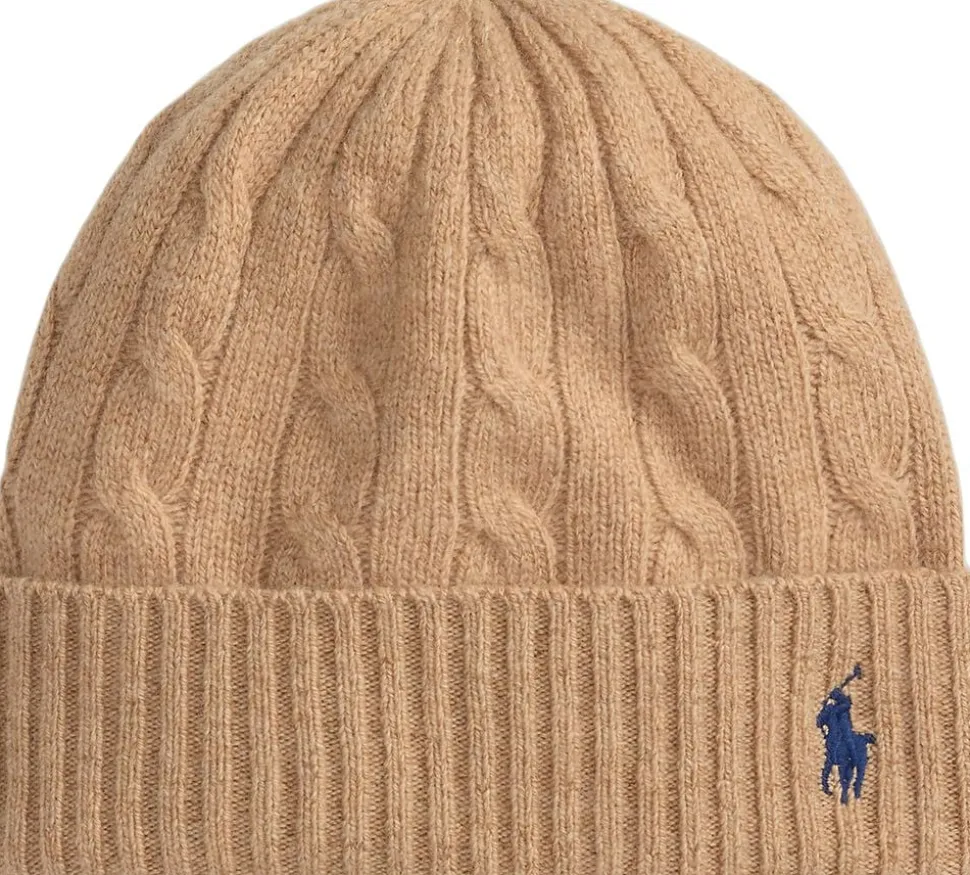 Denne hue i uld og kashmir er defineret af Ralph Laurens signatur kabelstrikkonstruktion og vores omhyggeligt broderede Pony, som detaljerer dens ribstrikkant.