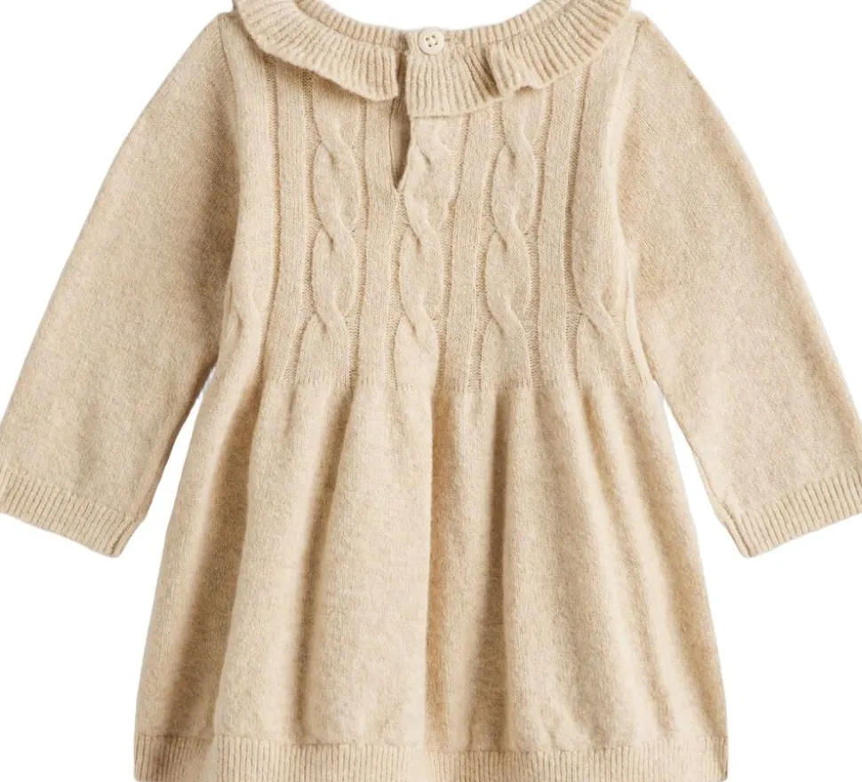 Denne kabelstrikkede kjole er et charmerende valg til de køligere måneder, den har en Peter Pan-krave og nederdel med svaj. Højdepunkterne omfatter en bomuldsblanding, kabelstrik på toppen, Peter Pan-krave, knaplukning på nakken, ribstrikket krave, manchetter og kant, Tommy Hilfiger-branding og Tommy Hilfiger-flag broderet på brystet. Shape & fit har en almindelig pasform, lange ærmer, strikkjole og design med pasform og svaj Design. Sammensætning og pleje: 55 % bomuld, 24 % nylon, 21 % akryl