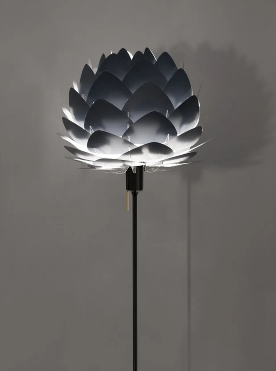 Forestil dig en pendant lampe … på hovedet, hæve delikat fra gulvet. Dette er Champagne’s særlige magt! Designet til at være et elegant akkompagnement til dine daglige festligheder, er Champagne et glamourøst stativ, der er tilgængeligt i sort eller hvid. Parret med enten en lampeskærm eller en pære, dens robuste, men subtile design passer perfekt ind i enhver stue, soveværelse eller hall. Lyset rejser hurtigt, ekstraordinære designs står.