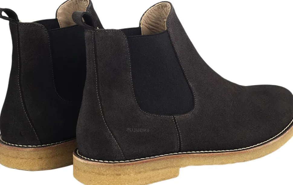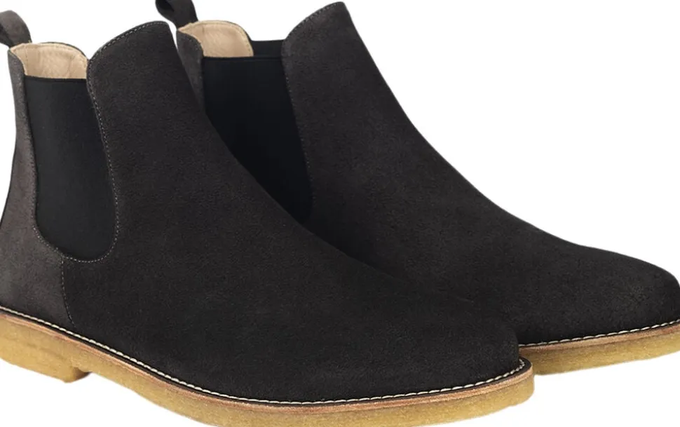 Støvlen har en mandelformet snude, funktionelle elastiksider, der gør støvlen nem at få af og på, hælstrop,