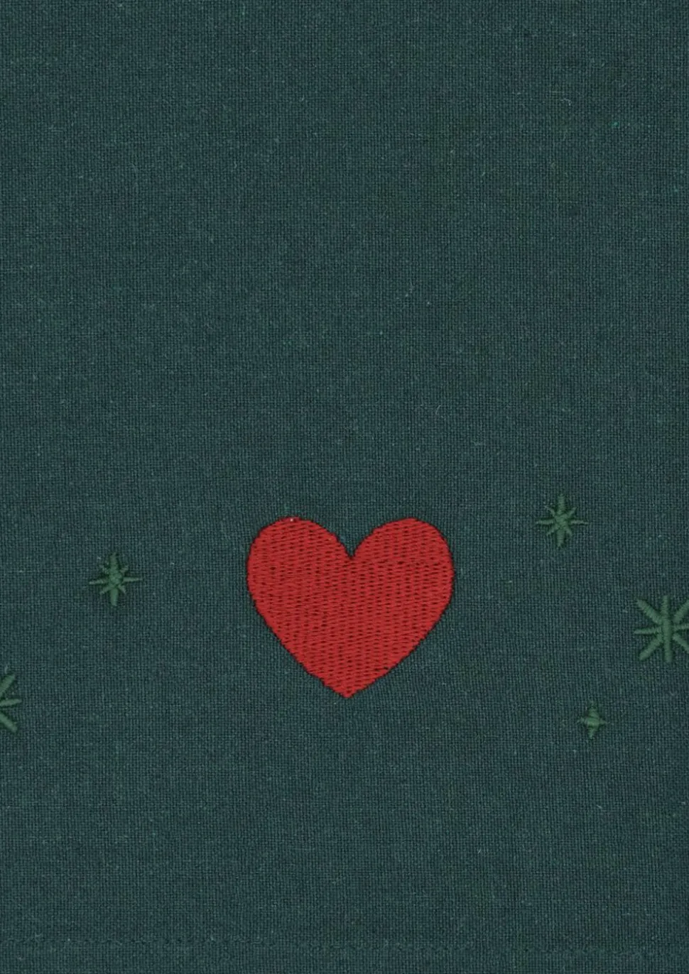 Mærk stemningen med JUNA Christmas Fable magiske juletekstiler til alle rum. Juleeventyr, fantasi og humoristiske dekorationer med masser af cosy kant. Med JUNA Christmas Fable får du en serie af moderne tekstiler med broderede motiver, der både æstetisk og legende forankrer og fornyer julens helt særlige stemning gennem et magisk juleunivers fuld af traditioner, hygge og personlighed. Tænk på en komplet og fuldstændig gennemført julekollektion af certificerede tekstiler til både dit køkken og resten af hjemmet. De dekorative julesokker på trappen fyldt op med dagens kalendergaver. Duftene fra køkkenet, der blander sig med hjertevarme forventninger og kærlige minder om en hyggelig aften i stuen. Den ikoniske juleborddækning, der løfter stemningen og får både børn og voksne til at glædes sammen. Og forestil dig så det hele tilsat nærmest karikerede klassiske broderier, der fortæller endnu flere historier end de tråde, de er syet med. Tryllebunden misteltensmagi, skitseagtige juletræer, nuttede rensdyr, ikoniske julehjerter og fluffy julestjerner. Alle skabt med masser af glimt i øjet i en sød og bevidst naivistisk stil, der ikke kan undgå at sende dit julehumør helt op til den skønneste stjernehimmel. JUNA Christmas Fable er skabt til at samle os omkring bordet, i køkkenet og også trække julestemningen med helt ind på puden, inden vi rammer drømmeland. Fuld af små broderede detaljer. Spækket med de helt store julefølelser. Denne fortryllende JUNA Christmas Fable-dug i en dyb julegrøn farve er dekoreret med et fantastisk mix af broderede julemotiver ned langs siderne af dugen, så du ikke skjuler de søde dekorationer, når du dækker op med skåle og fade og alle dine andre julefavoritter på midten af bordet. Dugen måler 150×270 cm og kommer i et skønt mix af GRS-certificeret genanvendt bomuld, GRS-certificeret genanvendt polyester og en lille smule viskose, der gør stoffet ekstra lækkert. JUNA Christmas Fable-serien giver dig et bredt udvalg af certificerede juletekstiler til hele hjemmet, hvor du mærker julestemningen i hver eneste tråd, og som du kan glæde dig til at finde frem jul efter jul. En kærlighedserklæring til godt håndværk og dekorativt dansk design vævet sammen af store eventyr og små broderede detaljer skabt til at holde længe og blive elsket endnu længere. (GRS Certified by Control Union, 1026087)