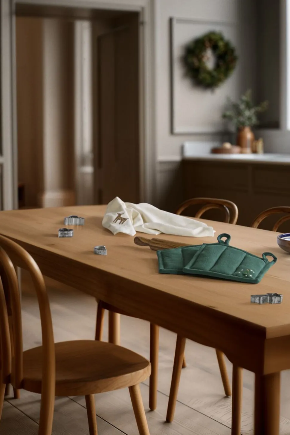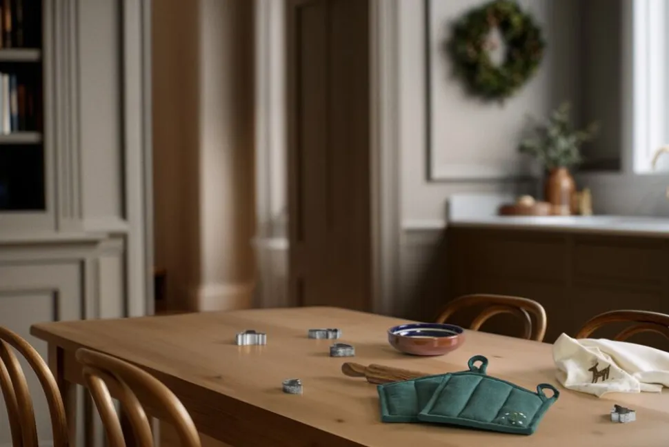 Mærk stemningen med JUNA Christmas Fable magiske juletekstiler til alle rum. Juleeventyr, fantasi og humoristiske dekorationer med masser af cosy kant. Med JUNA Christmas Fable får du en serie af moderne tekstiler med broderede motiver, der både æstetisk og legende forankrer og fornyer julens helt særlige stemning gennem et magisk juleunivers fuld af traditioner, hygge og personlighed. Tænk på en komplet og fuldstændig gennemført julekollektion af certificerede tekstiler til både dit køkken og resten af hjemmet. De dekorative julesokker på trappen fyldt op med dagens kalendergaver. Duftene fra køkkenet, der blander sig med hjertevarme forventninger og kærlige minder om en hyggelig aften i stuen. Den ikoniske juleborddækning, der løfter stemningen og får både børn og voksne til at glædes sammen. Og forestil dig så det hele tilsat nærmest karikerede klassiske broderier, der fortæller endnu flere historier end de tråde, de er syet med. Tryllebunden misteltensmagi, skitseagtige juletræer, nuttede rensdyr, ikoniske julehjerter og fluffy julestjerner. Alle skabt med masser af glimt i øjet i en sød og bevidst naivistisk stil, der ikke kan undgå at sende dit julehumør helt op til den skønneste stjernehimmel. JUNA Christmas Fable er skabt til at samle os omkring bordet, i køkkenet og også trække julestemningen med helt ind på puden, inden vi rammer drømmeland. Fuld af små broderede detaljer. Spækket med de helt store julefølelser. Denne fortryllende JUNA Christmas Fable-grydelap i en dyb julegrøn farve er dekoreret med et broderet motiv af seriens juletræ, der omgivet af de yndigste små julestjerner i hvid smukt og stilfuldt pryder grydelappens nederste højre hjørne. Den CE-mærkede JUNA Christmas Fable-grydelap måler 22×22 cm og kommer med en yderside og en matchende strop i et skønt tekstilmix, hvor GRS-certificeret genanvendt bomuld bliver spundet sammen med polyester for en flot og funktionel stofkvalitet med både blødhed og slidstyrke, mens den indvendige fyldning er i 100% GRS-certificeret genanvendt polyester. JUNA Christmas Fable-serien giver dig et bredt udvalg af certificerede juletekstiler til hele hjemmet, hvor du mærker julestemningen i hver eneste tråd, og som du kan glæde dig til at finde frem jul efter jul. En kærlighedserklæring til godt håndværk og dekorativt dansk design vævet sammen af store eventyr og små broderede detaljer skabt til at holde længe og blive elsket endnu længere. (GRS Certified by Control Union, 1026087)