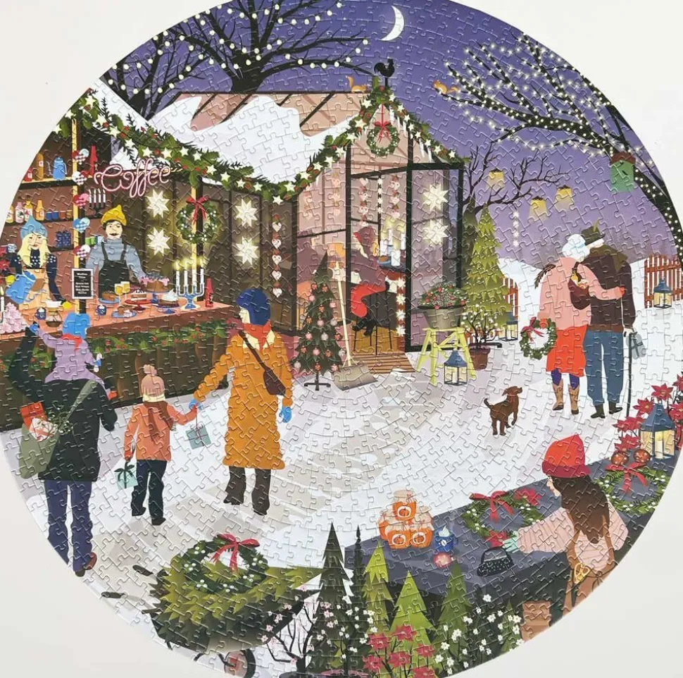 Julepuslespil med 1000 brikker fra danske ViSSEVASSE. Puslespillet er tegnet af Dorthe, som tegner alle ViSSEVASSES produkter.