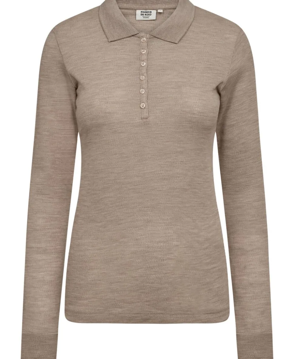 Langærmet polo fra Magasin du Nord Collection i den blødeste kvalitet af 100% uld med RWS- og OEKO-TEX® STANDARD 100-certificering. Blusen er enkel i modellen med en klassisk krave, knaplukning på brystet, lange ærmer med brede ribkanter samt en tætsiddende pasform. En elegant bluse i den lækreste kvalitet.