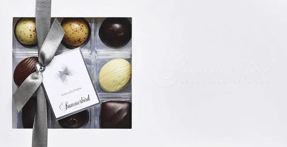 Collection 18 indeholder 9 forskellige varianter af vores raffinerede, klassiske fyldte chokolader. Æsken byder delikat velsmag i form af blandt andet marcipan af stenvalsede middelhavsmandler, praliné, mynte og karamel.