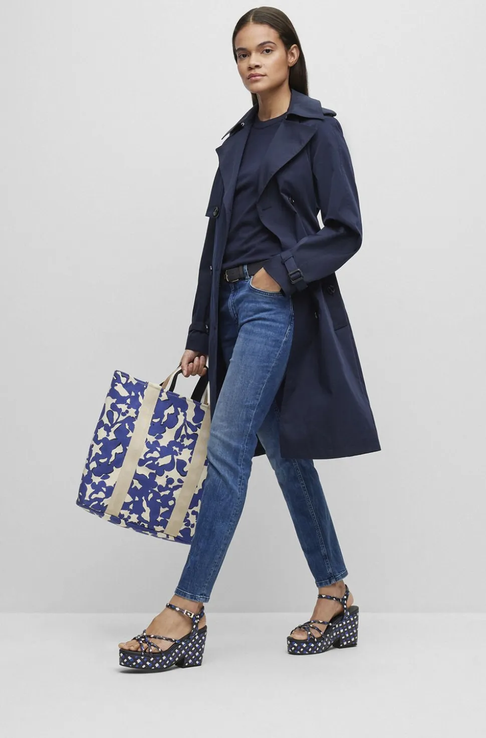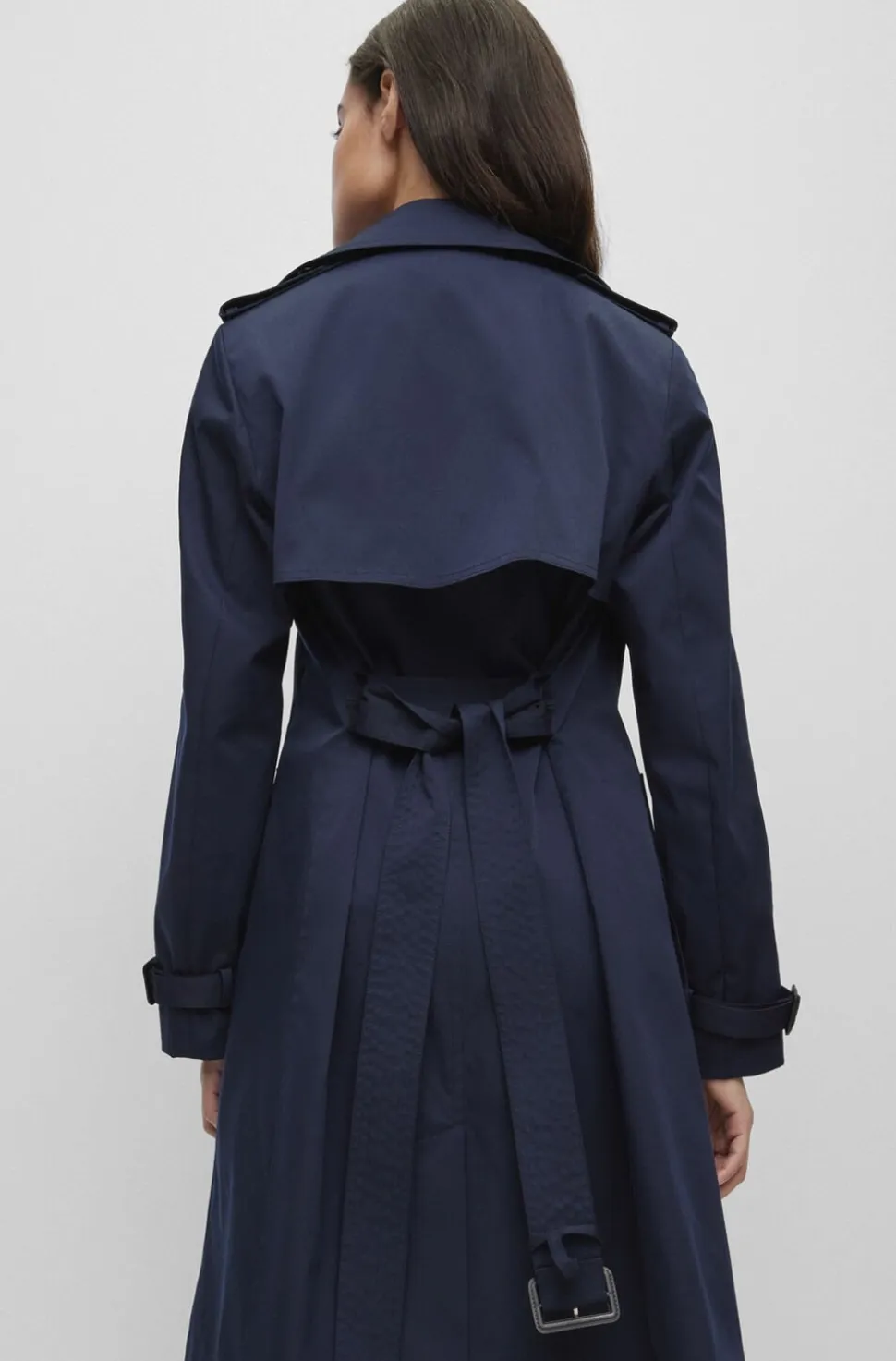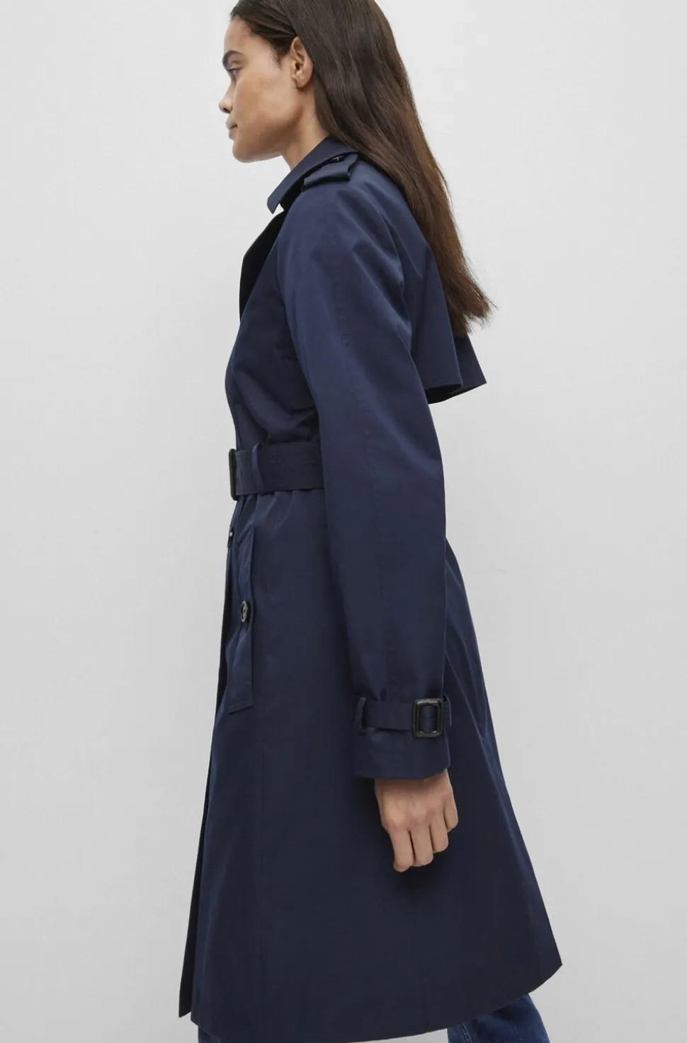 – Stilfuldt design: Den dobbelte knaplukning og det karakteristiske bælte giver et skarpt og velovervejet look, der aldrig går af mode.