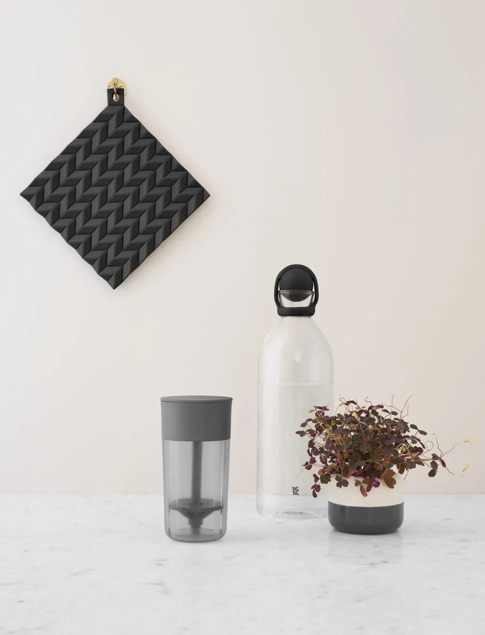 Den populære COOL-IT er en stilren og funktionel glaskaraffel designet af canadiske Francis Cayouette. Med COOL-IT karaflen kan du altid servere en indbydende og velsmagende forfriskning på flot vis i den klare glaskaraffel. Pift eventuelt almindelig vand op med isterninger og agurkestænger, ingefær, lime eller mynte, fyld karaflen med frisk æblesaft fra æblerne i haven eller hjemmelavet lemonade. COOL-IT er den perfekte kombination af design og funktionalitet Karaflen passer perfekt på hylden i køleskabsdøren og den smarte åbne-lukke-funktion kan håndteres med et enkelt tryk med tommelfingeren: Vip blot kuglen over kanten, og skænk op, og skub kuglen på plads igen for at lukke karaflen til, så hverken bier eller andre uønskede insekter finder vej ned i karaflen, når I nyder en kold forfriskning på terrassen.