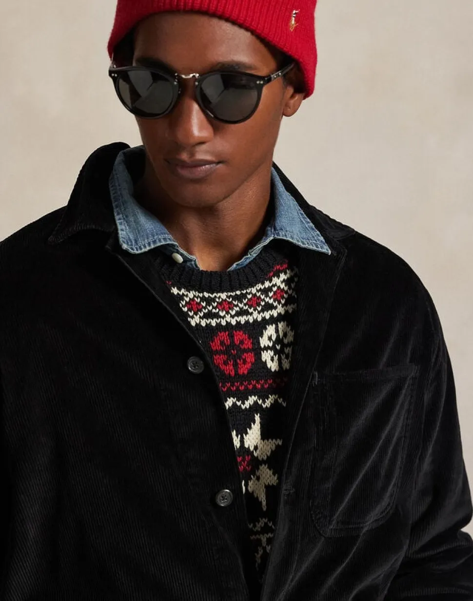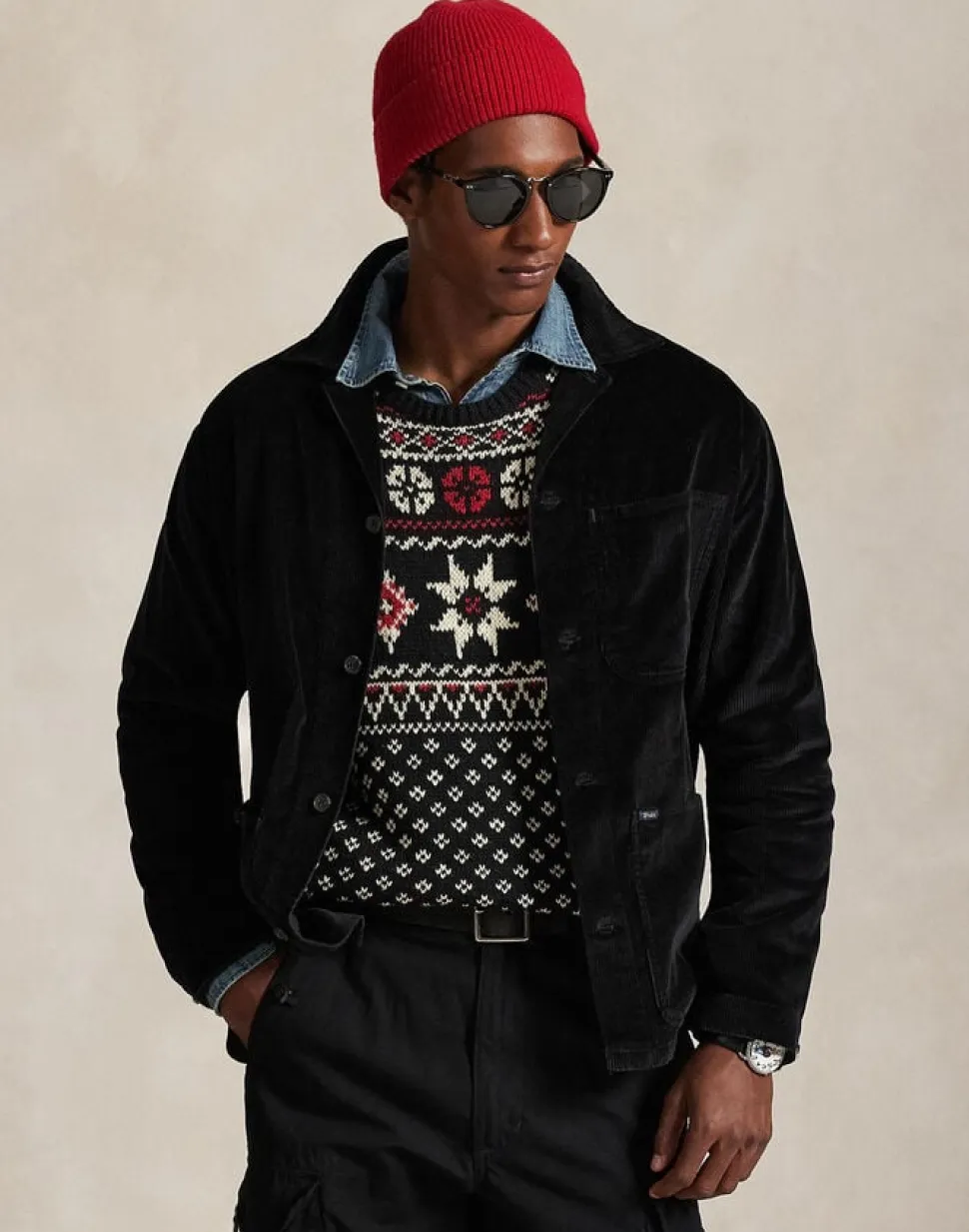Fløjl med brede vinkler forbedrer den rå natur af dette lags arbejdstøjsinspirerede silhuet