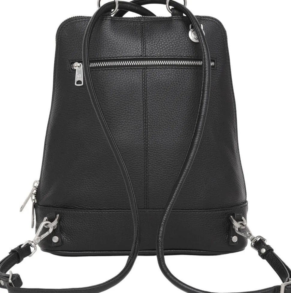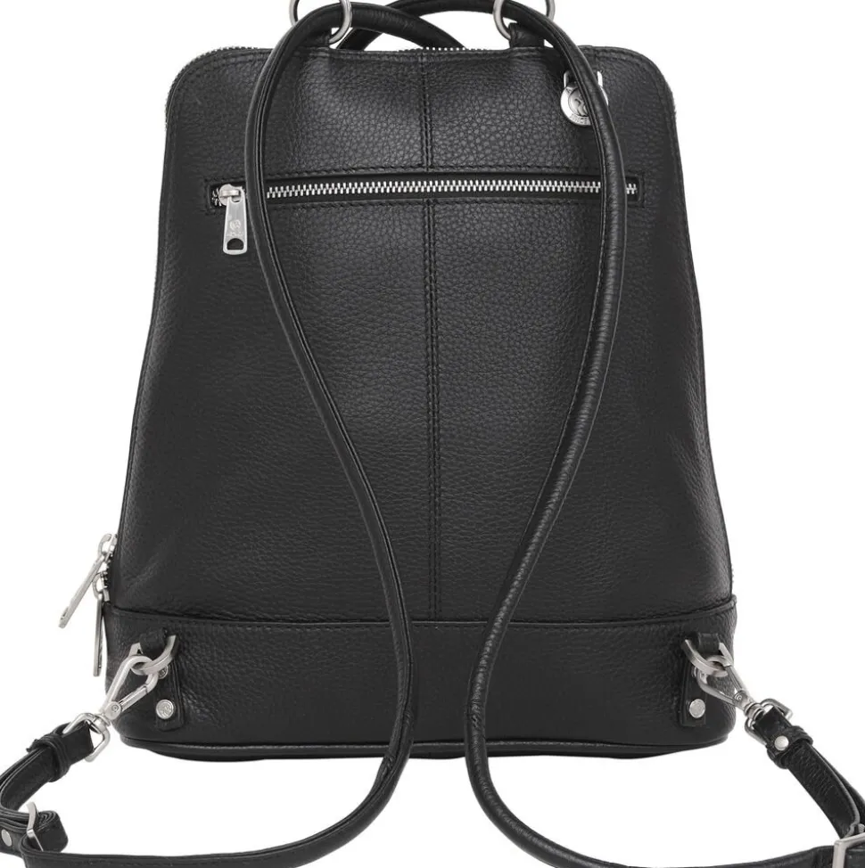 Lina rygsæk i Cormorano skind fra Adax. Smart rygsæk som kan åbnes meget i begge sider, så det er nemt at finde sine ting. Tasken lukkes med to lynlåse. Skulderremmene kan justeres i længden. Der er en mindre lynlåslomme bag på tasken. Ideni er der to større åbne rum som opdeles på midten af et smalt rum med lynlås. Der er to mindre lommer bagerst.