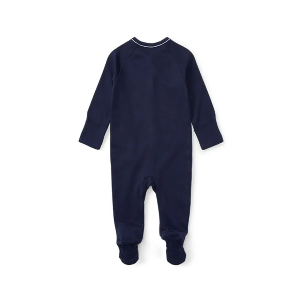 Natdragt fra Ralph Lauren i den blødeste kvalitet af 100% bomuld. Dragten er enkel i modellen med en diskret logodetalje på fronten, lange ærmer og ben, smalle ribkanter, lukkede fødder samt trykknapper på fronten og ned imellem benene.
