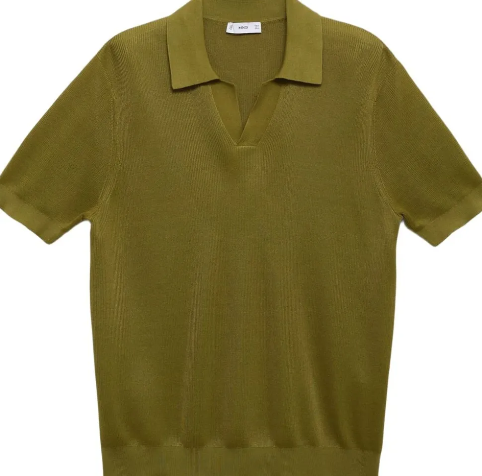 Finstrikket stof, Bomuldsstof, Lige Design, Korte ærmer, Poloshirt med krave uden knapper, Ribbet krave, ærmer og kant, Model er 190 cm høj og bærer en størrelse M. INGEN TRANSLATION 64,5