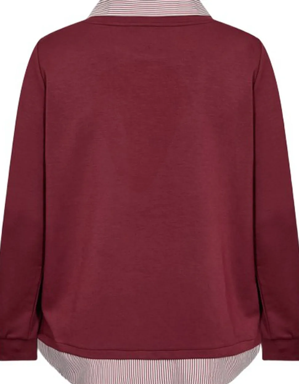 WA-SABINA 63 Sweatshirt er fremstillet af 48 % modal, 48 % polyester og 4 % elastan. Den har indbyggede skjortedetaljer med stribet krave og kant. Sæt den sammen med jeans eller bukser for et smart og afslappet look.