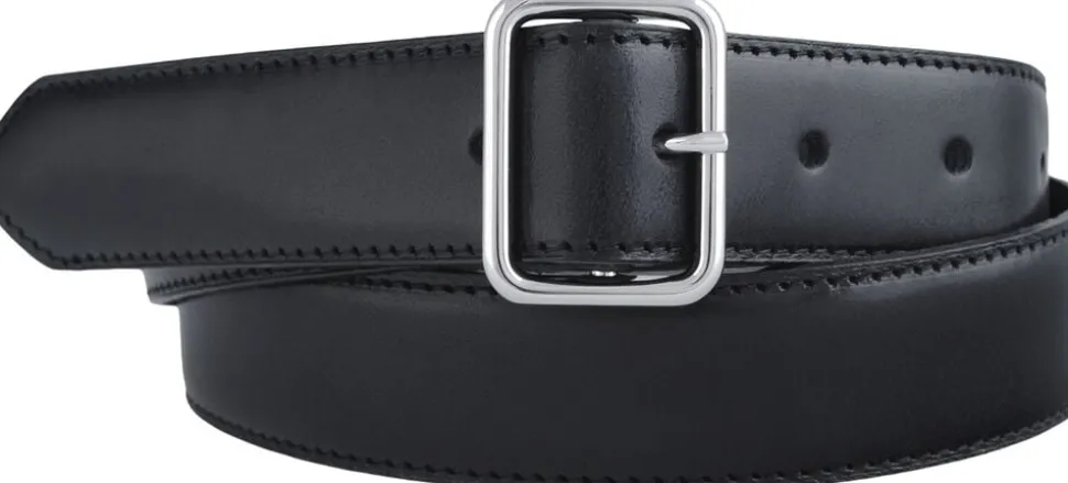Et raffineret bælte med smalt helspænde. Bæltet er produceret i Danmark i to lag LWG-certificeret narvlæder og kommer med kraftige stikninger langs kanterne på bæltet.